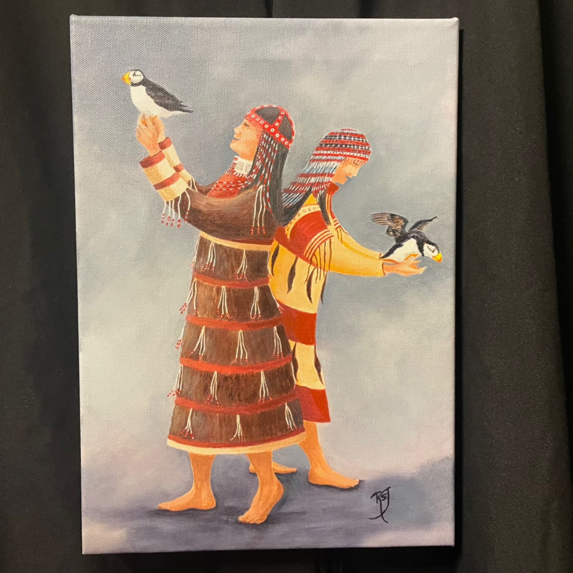Friends canvas 10"x14", Alutiiq/Sugpiaq and Unangax artist Rhonda Shelford Jansen.