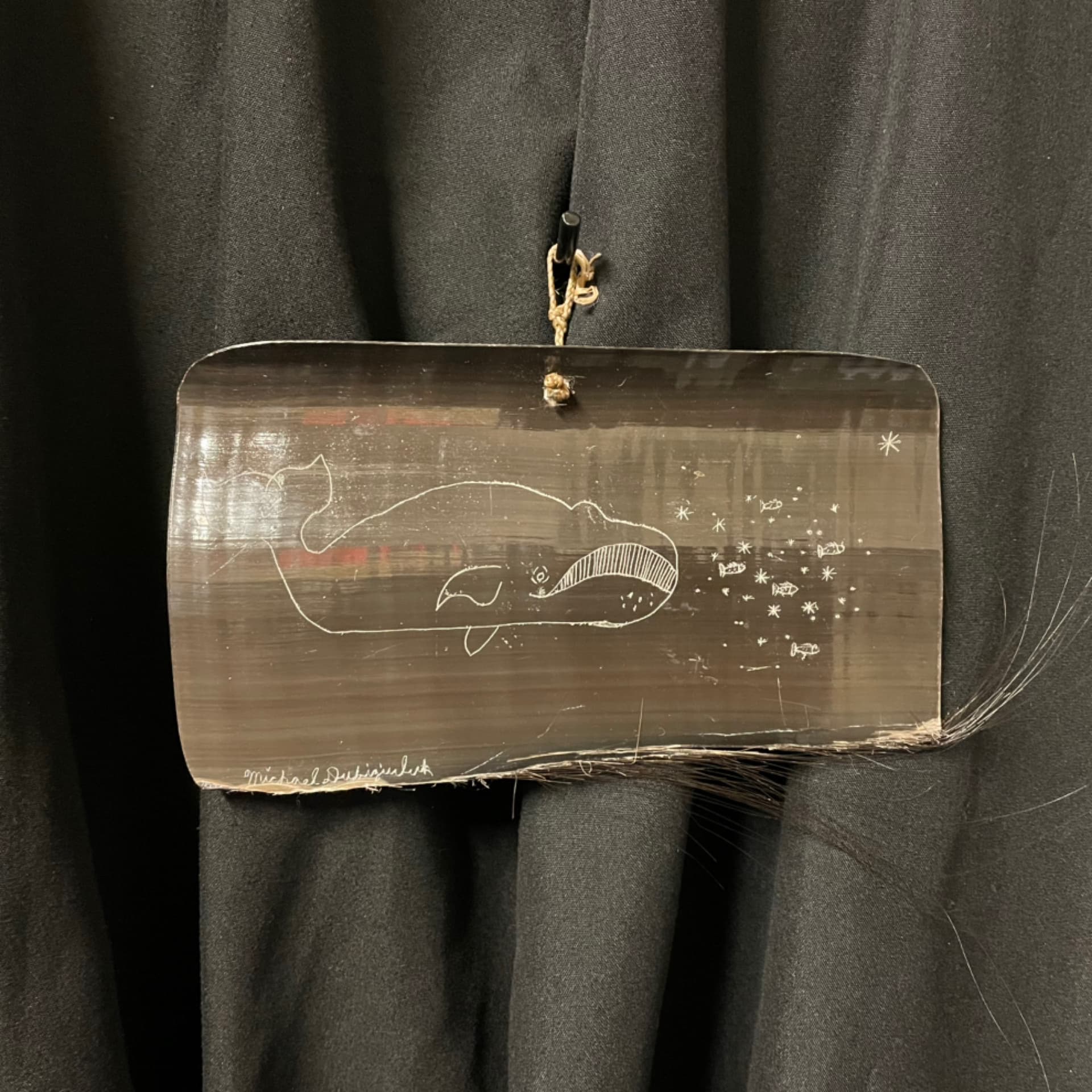 Baleen whale picture board, Athabascan/Yup'ik artist Michael Dubiqiuluk from Hooper Bay.