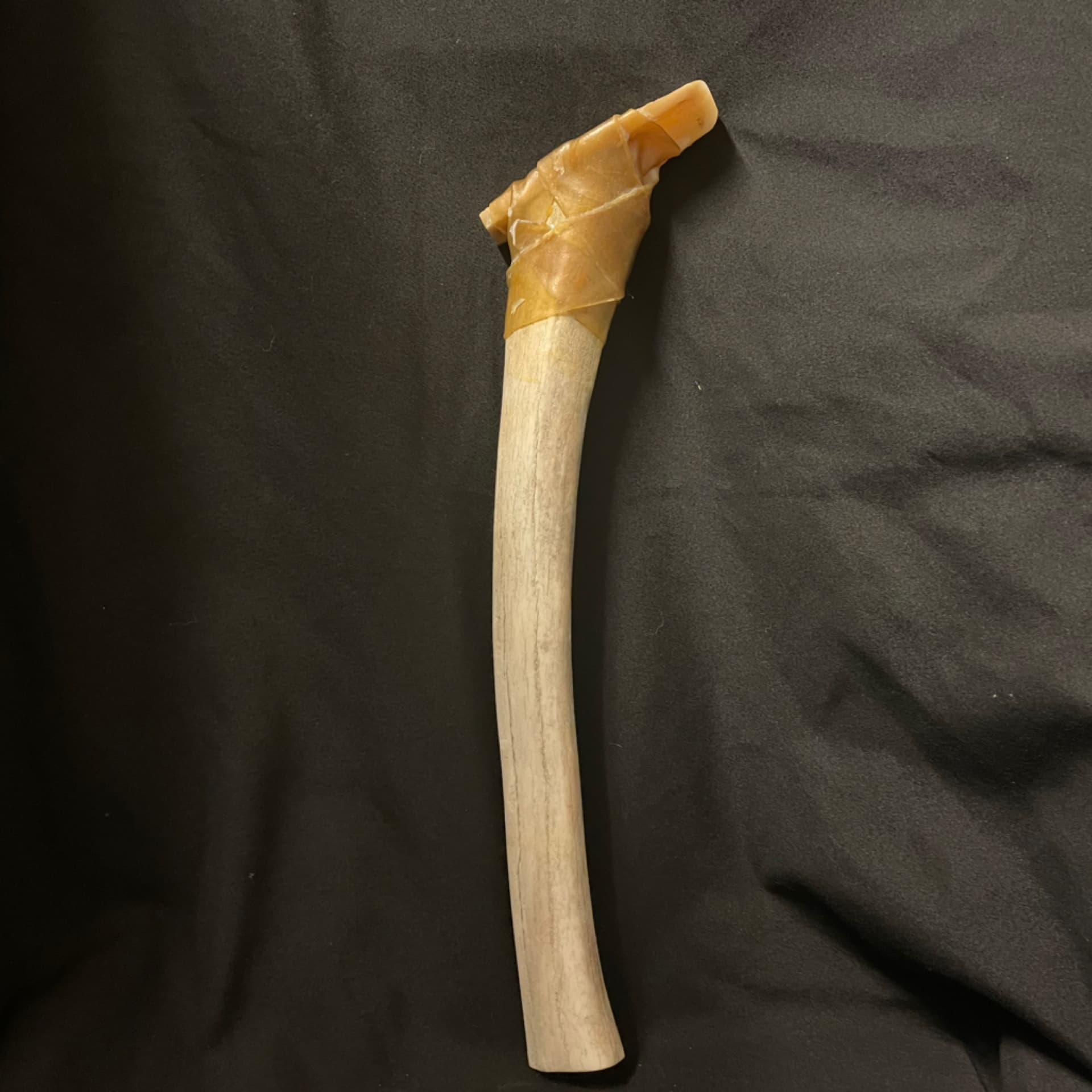 Made of Moose antler, moose hide and moose bone, by Ahtna Athabaskan Elder Harold Northway who is 87 years old. (2024)