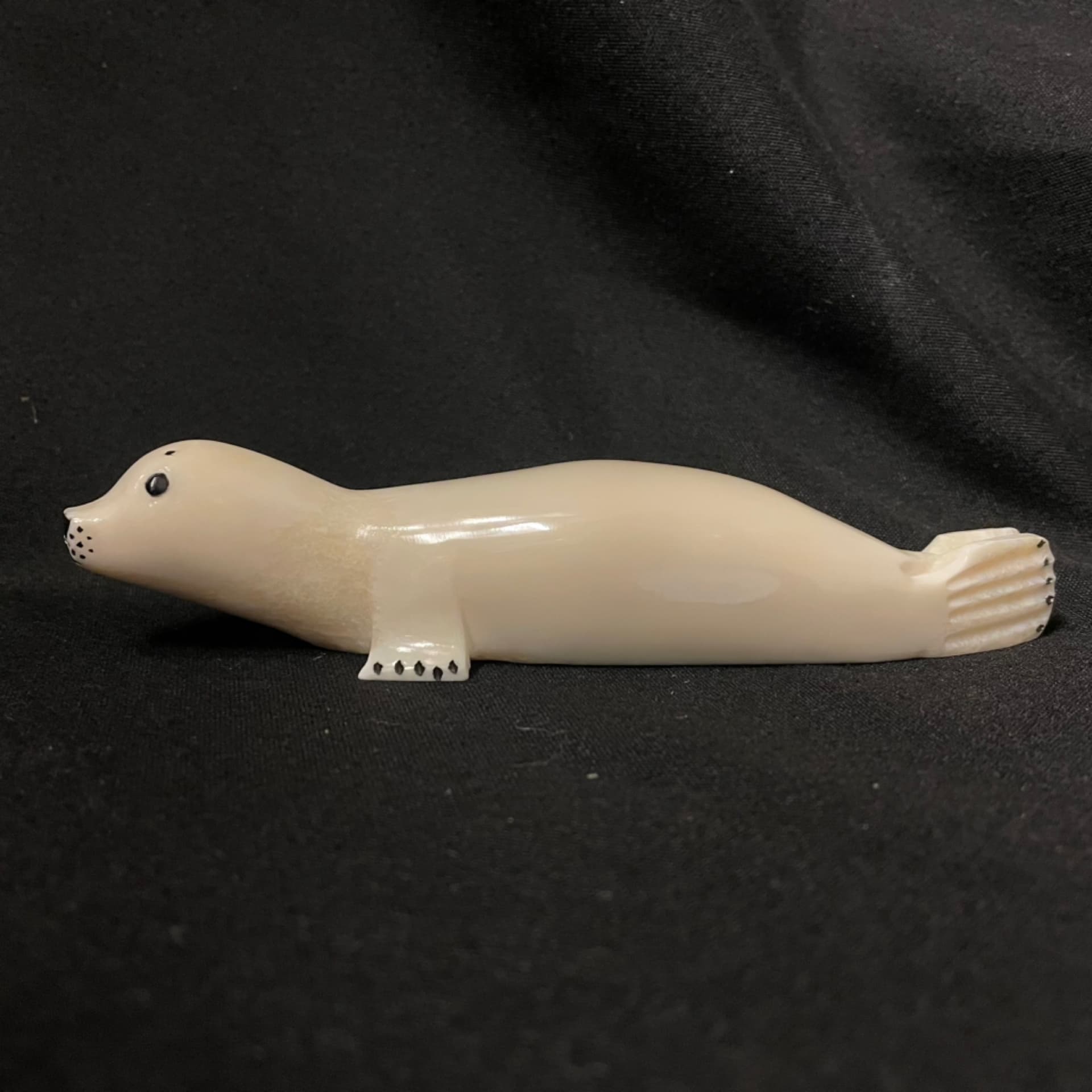 Large ivory seal carving by St. Lawrence Island Yupik artist Robert "Utuqsiq" McCoy Apongalook from Gambell on St. Lawrence Island.
