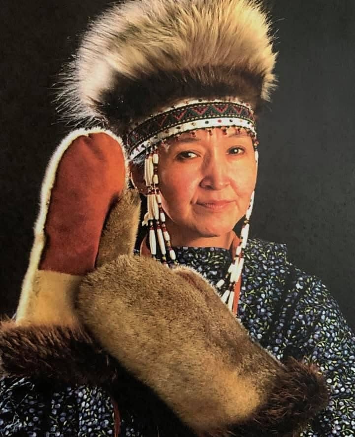 Eva was born and raised in the village of Eek, where she first learned to sew by watching her mother and grandmother make yo-yos at a young age. She has been an artist at the Alaska Native Heritage Center since its opening in 1999 and has shared her knowledge of Native art through teaching at the University of Alaska Anchorage, the Anchorage School District, and the Anchorage Museum.